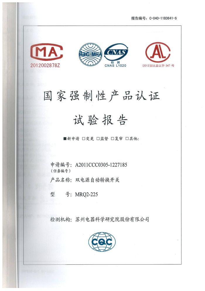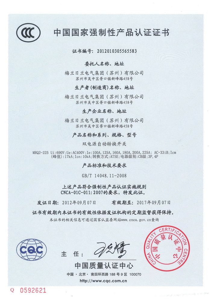 MRQ2-225雙電源資質(zhì)證書(shū)