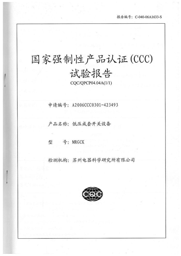 (成套)MRGCK主母線資質(zhì)證書