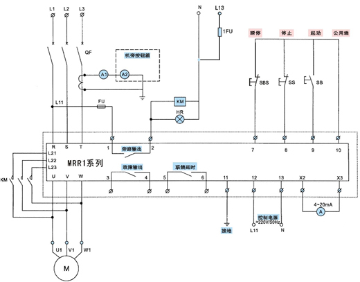 | 1、2 | 旁路繼電器端子 | 可用于起動(dòng)完畢后切換至旁路接觸器 |