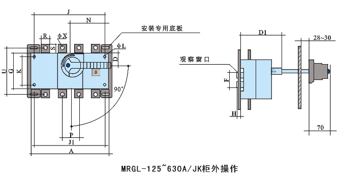 | A | B | C | D | D1 | E | G | ΦL | J | J1 | K | N | P | R | S | T | U | ΦX | Y | F | H | |